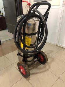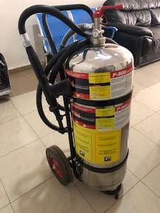 Our stainless steel 50 litre fire extinguisher is built onto a frame with large wheels for easy maneuvering over most ground conditions. Despite being a lot bigger than a portable fire extinguisher, the wheeled units are surprisingly easy to use by one person.